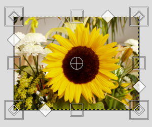 Dopo aver selezionato lo strumento di trasformazione unificata nel pannello strumenti, fare clic sulla finestra immagine. Diversi elementi appariranno sulla finestra immagine: